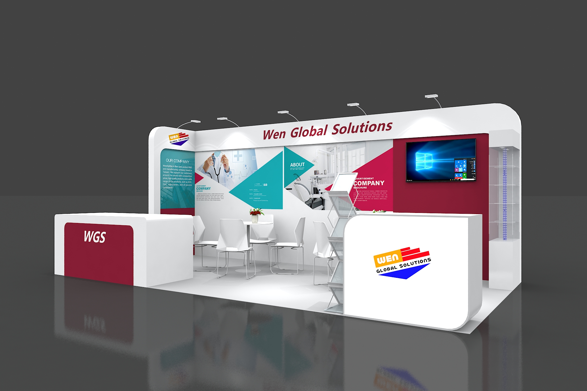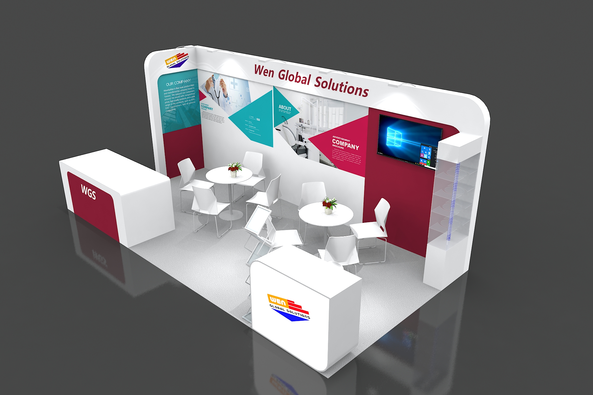 套餐编号: 18-K1 包括: 背景墙、1张咨询台、1张吧椅、1张展示台、2张洽谈桌、8张洽谈椅、地毯、1个垃圾篓、植物盆栽、照明用电、资料架、展台安装及拆除等等。 ***不含画面设计 场地费:12,000美元(下载场地合同) 搭建费: 19,800美元 (下载搭建订单)