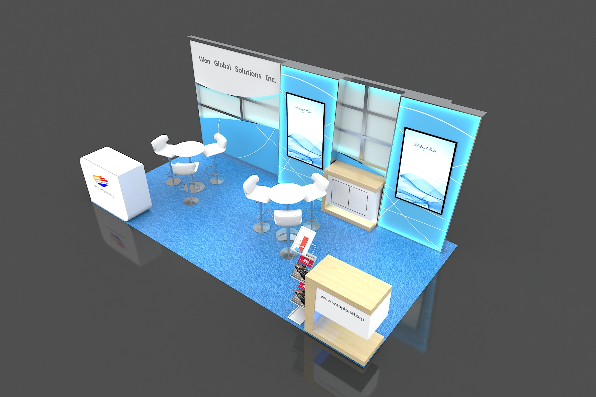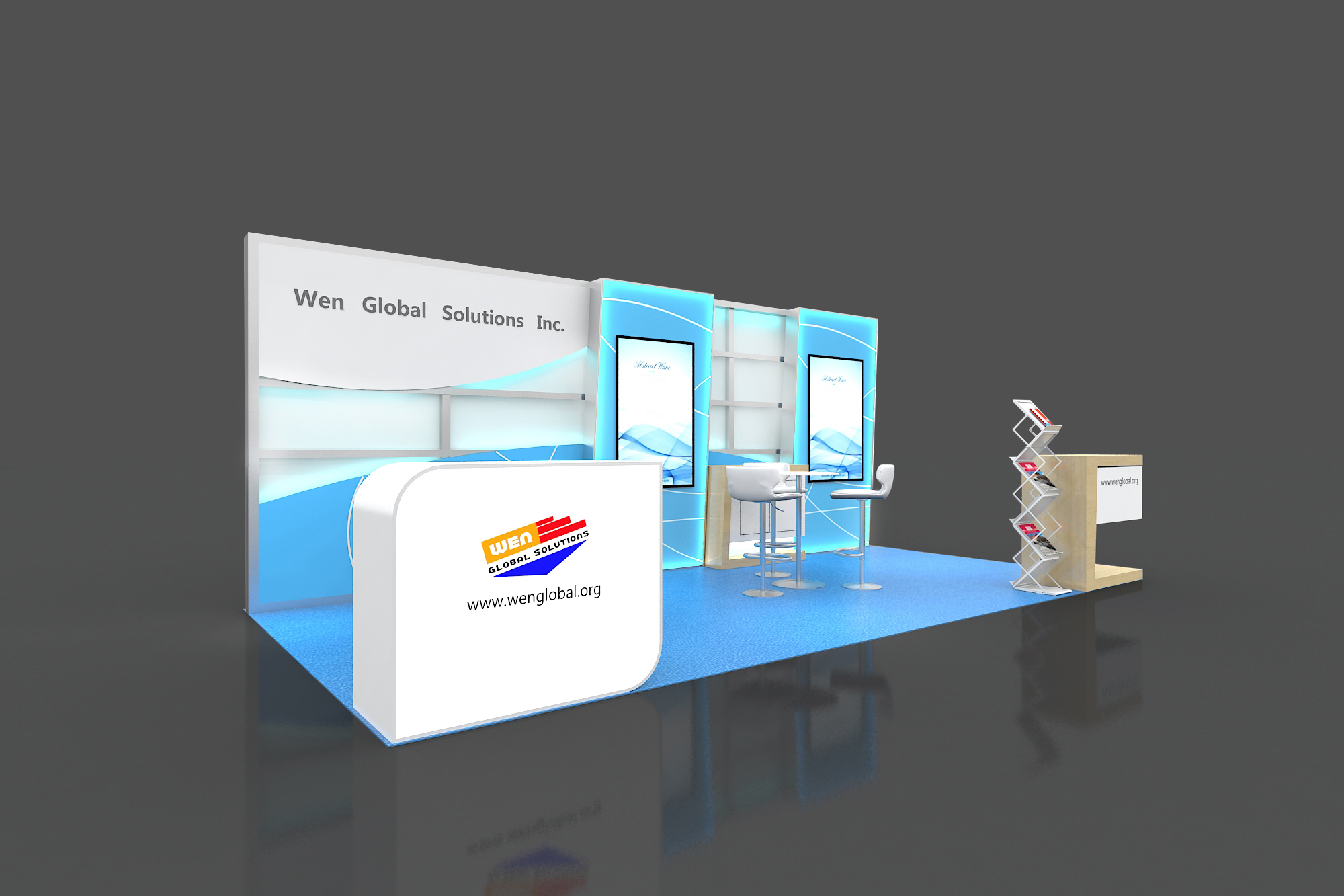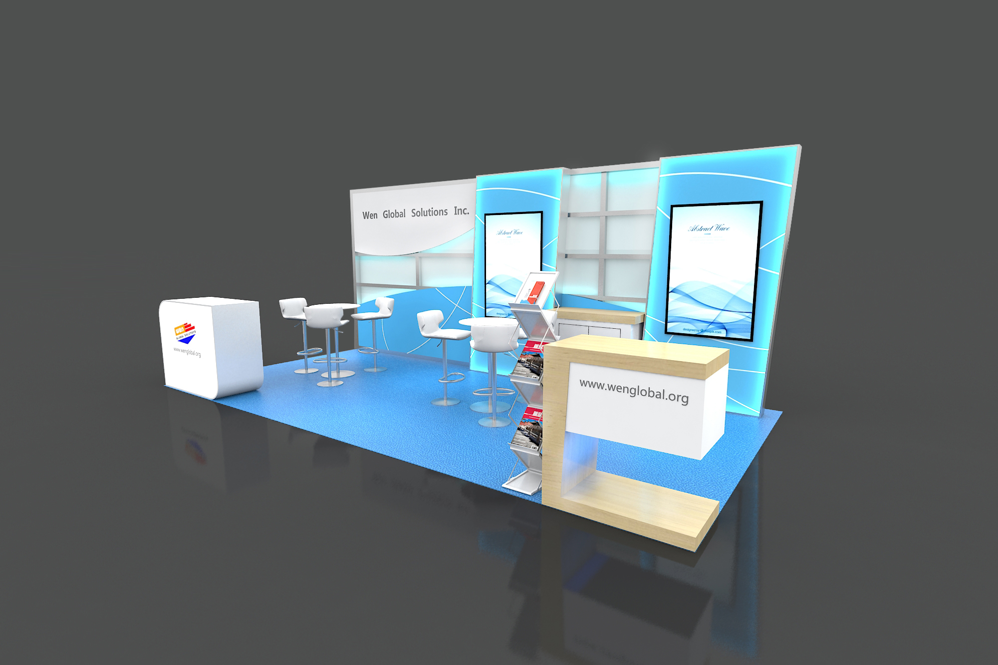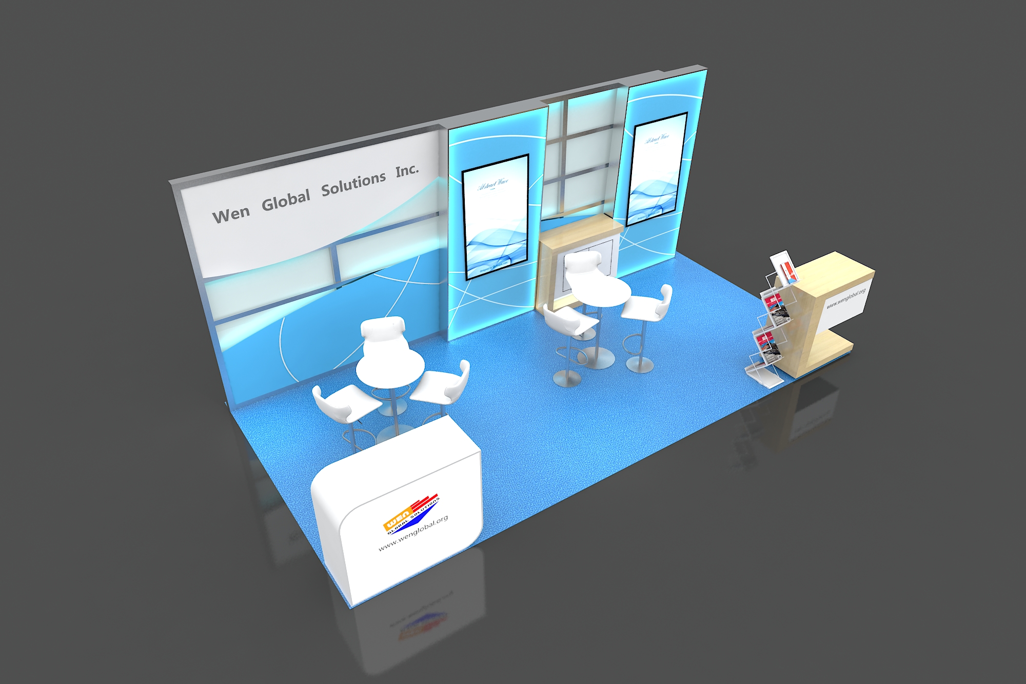 套餐编号:18-K3 包括: 背景墙、2个灯箱、1张咨询台、2张展示台、2张洽谈桌、6张吧椅、地毯、1个垃圾篓、照明用电、资料架、展台安装及拆除等等。 ***不含画面设计 场地费:12,000美元元 (下载场地合同) 搭建费:22,800美元 (下载搭建订单)