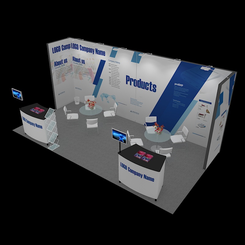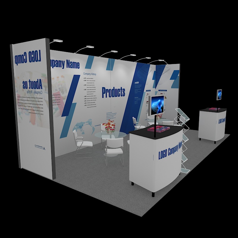 套餐编号: 18H 包括: 背景墙、2张带有平板电脑显示器的展示台、2张吧椅、2张洽谈台、8张洽谈椅、1个杂志架、1个垃圾篓、照明用电、地毯、展台安装及拆除等等。 ***不含画面设计。 场地费:12,000美元(下载场地合同) 搭建费: 铝合金画布背景: 17,800美元 (下载搭建订单) LED灯箱背景: 18,800美元 (下载搭建订单) 木结构背景: 19,800美元 (下载搭建订单)