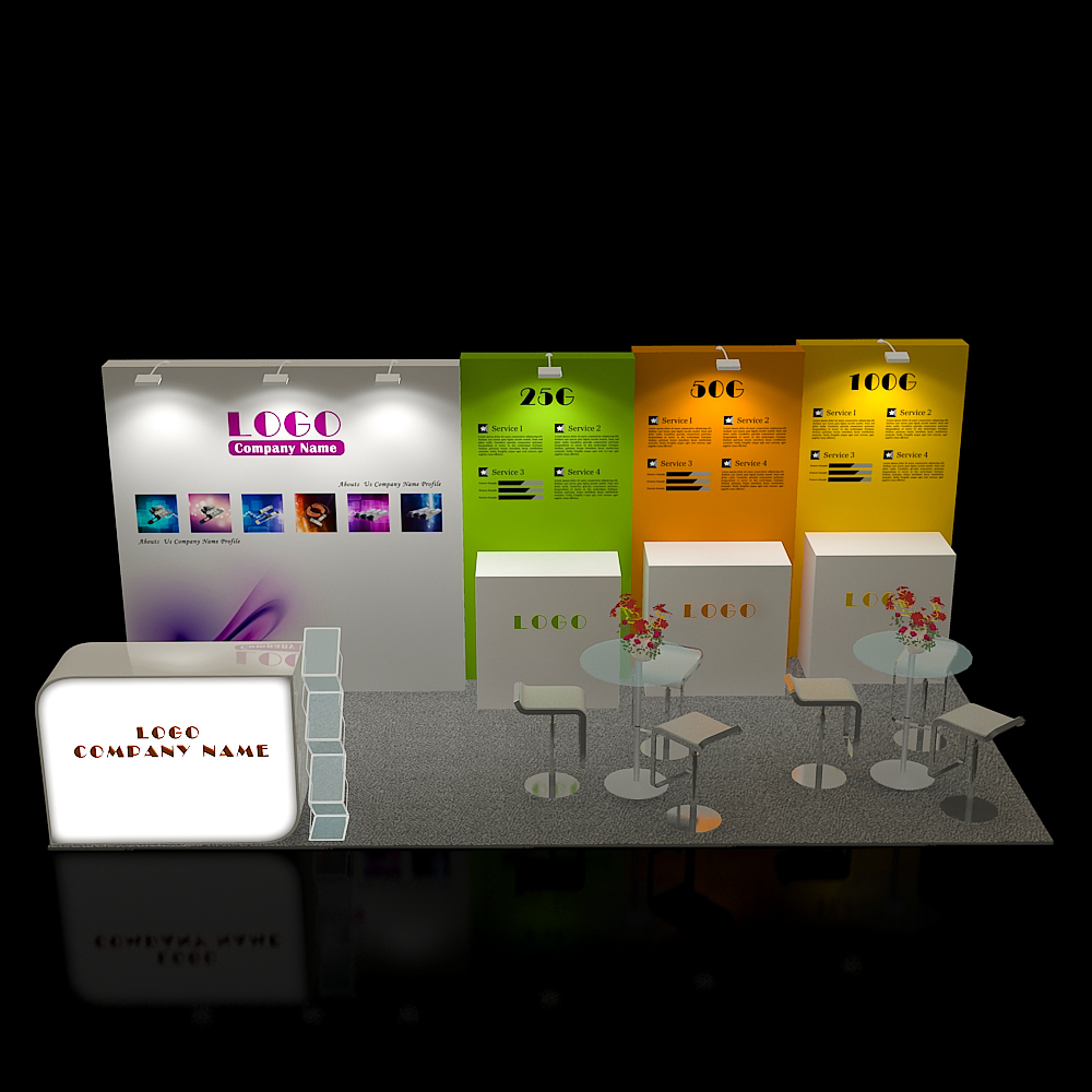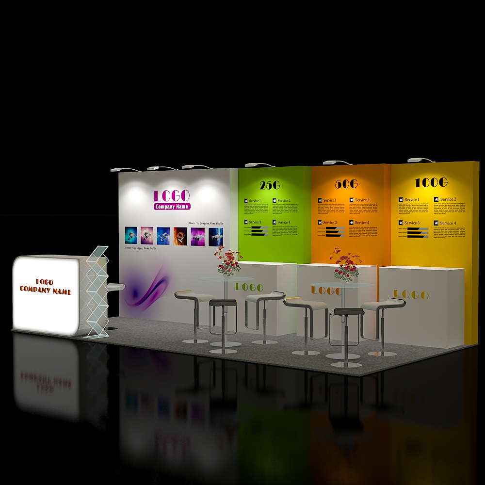 套餐编号: 18X 包括: 背景墙、3个展示柜、1张咨询台、7把吧椅、2张洽谈台、6盏照明射灯、1个资料架、地毯、垃圾桶、照明用电。展台安装及拆除等等 ***不含画面设计 场地费:12,000美元(下载场地合同) 搭建费: 铝合金画布背景: 20,000美元 (下载搭建订单) LED灯箱背景: 21,000美元 (下载搭建订单) 木结构背景: 22,000美元 (下载搭建订单)