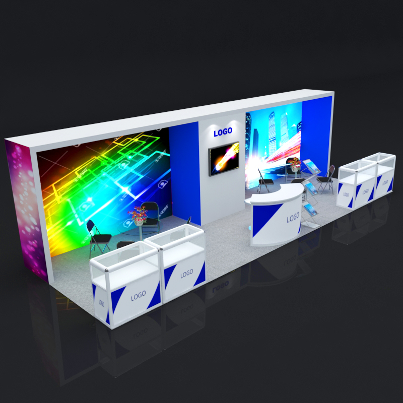套餐编号: 27H 包括: 背景墙、1台电视机、4个玻璃低柜、2张洽谈台、8张洽谈椅、1个咨询台、1个资料架、1把吧椅、地毯、1个垃圾篓、照明用电、展台安装及拆除等等。 ***不含画面设计。 场地费:18,000美元 (下载场地合同) 搭建费: 铝合金画布背景:24,800美元 (下载搭建订单) LED灯箱背景: 25,300美元 (下载搭建订单) 木结构背景: 27,800美元 (下载搭建订单)