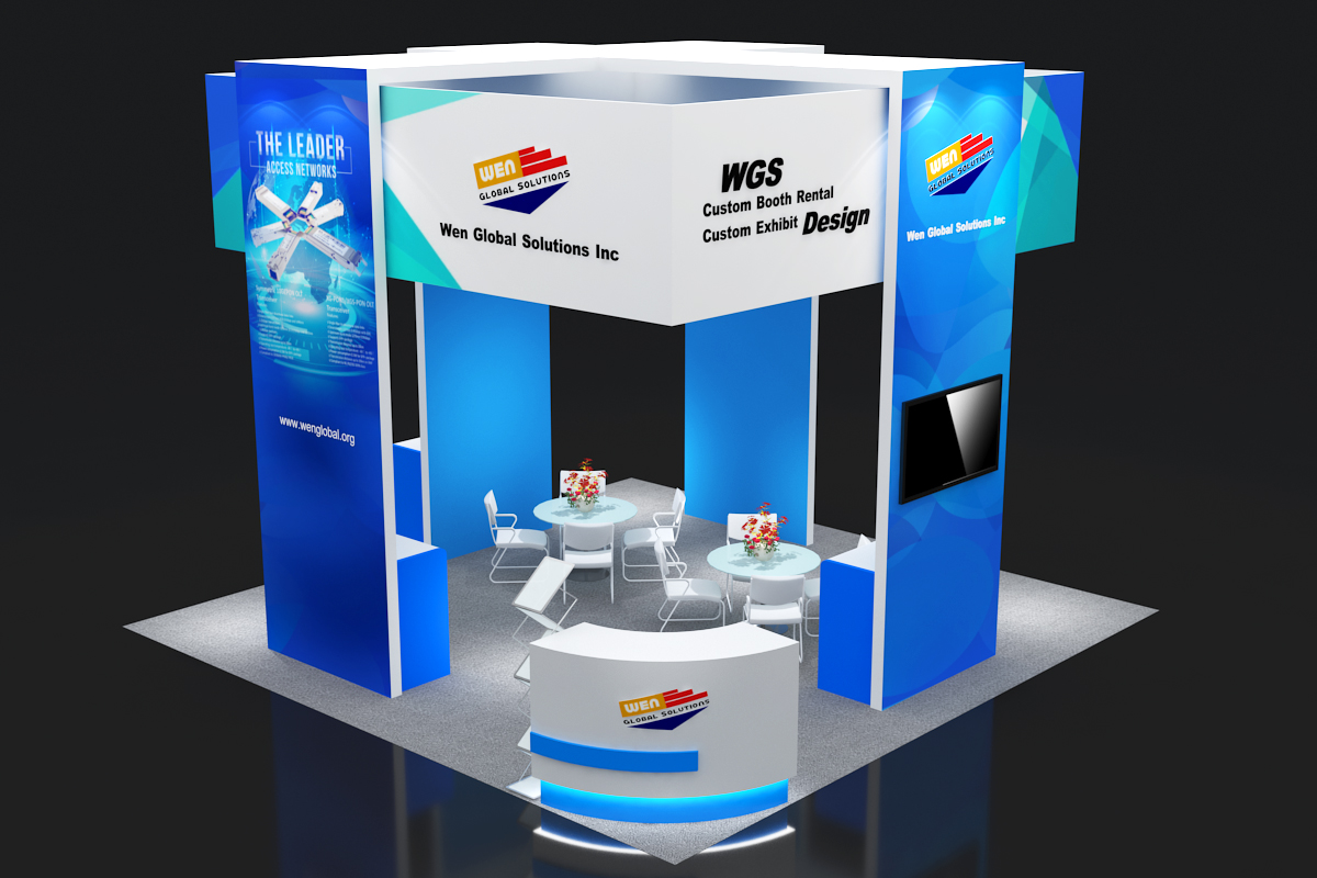 套餐编号: 36-W19 包括: 背景墙、2台48英寸电视机、3个展示柜、1个接待台,1张吧椅、2张洽谈桌、8张洽谈椅、地毯、1个垃圾篓、资料架、照明用电、展台安装及拆除等等。 ***不含画面设计 场地费: 24,000美元 (下载场地合同) 拐角位(开口)的展位需要另加: 300美元/每个