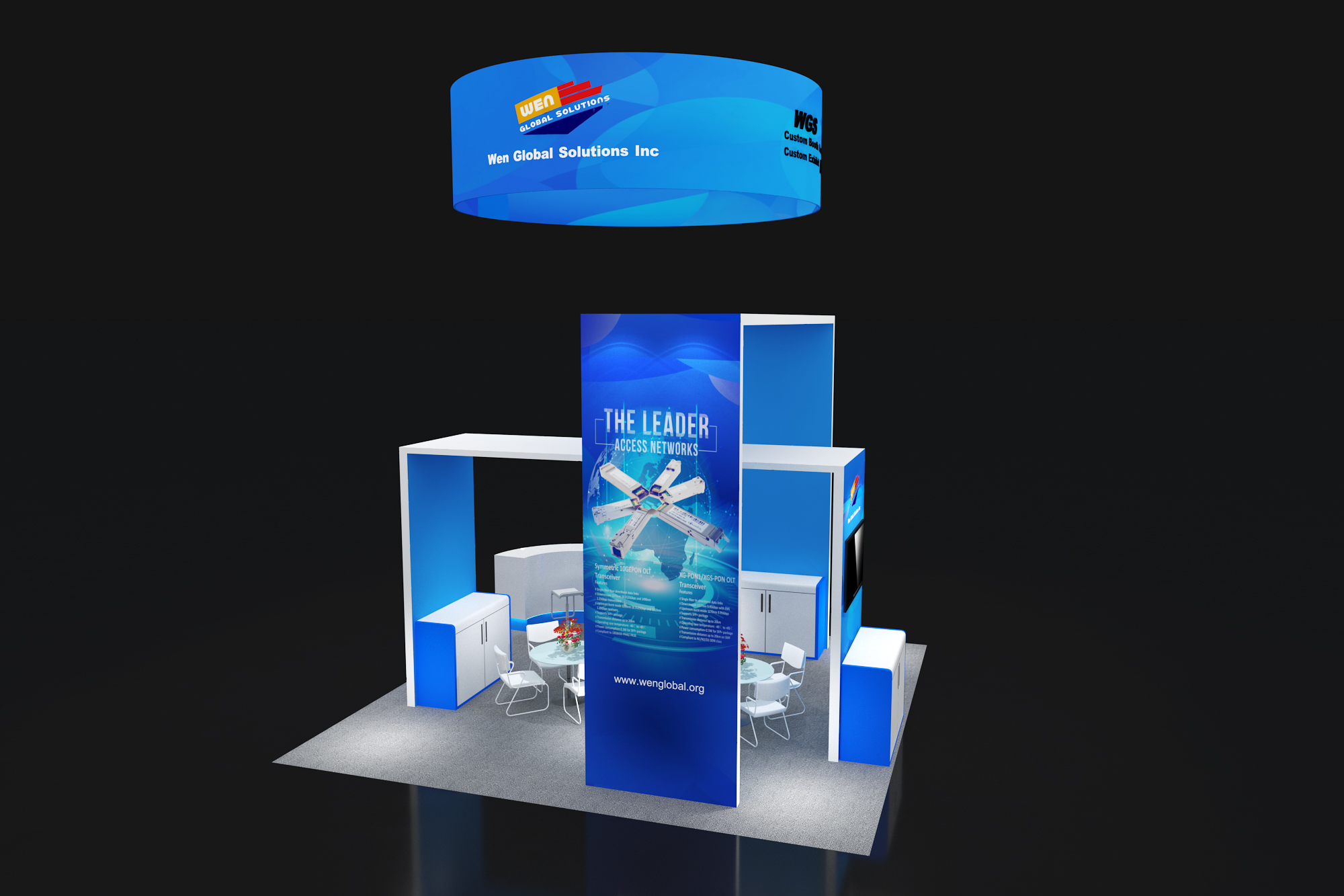 套餐编号: 36-W25 包括: 背景墙、1个吊顶、2台48英寸电视机、3个展示柜、1个接待台,1张吧椅、2张洽谈桌、8张洽谈椅、地毯、1个垃圾篓、资料架、照明用电、展台安装及拆除等等。 ***不含画面设计 场地费: 24,000美元 (下载场地合同) 拐角位(开口)的展位需要另加: 300美元/每个