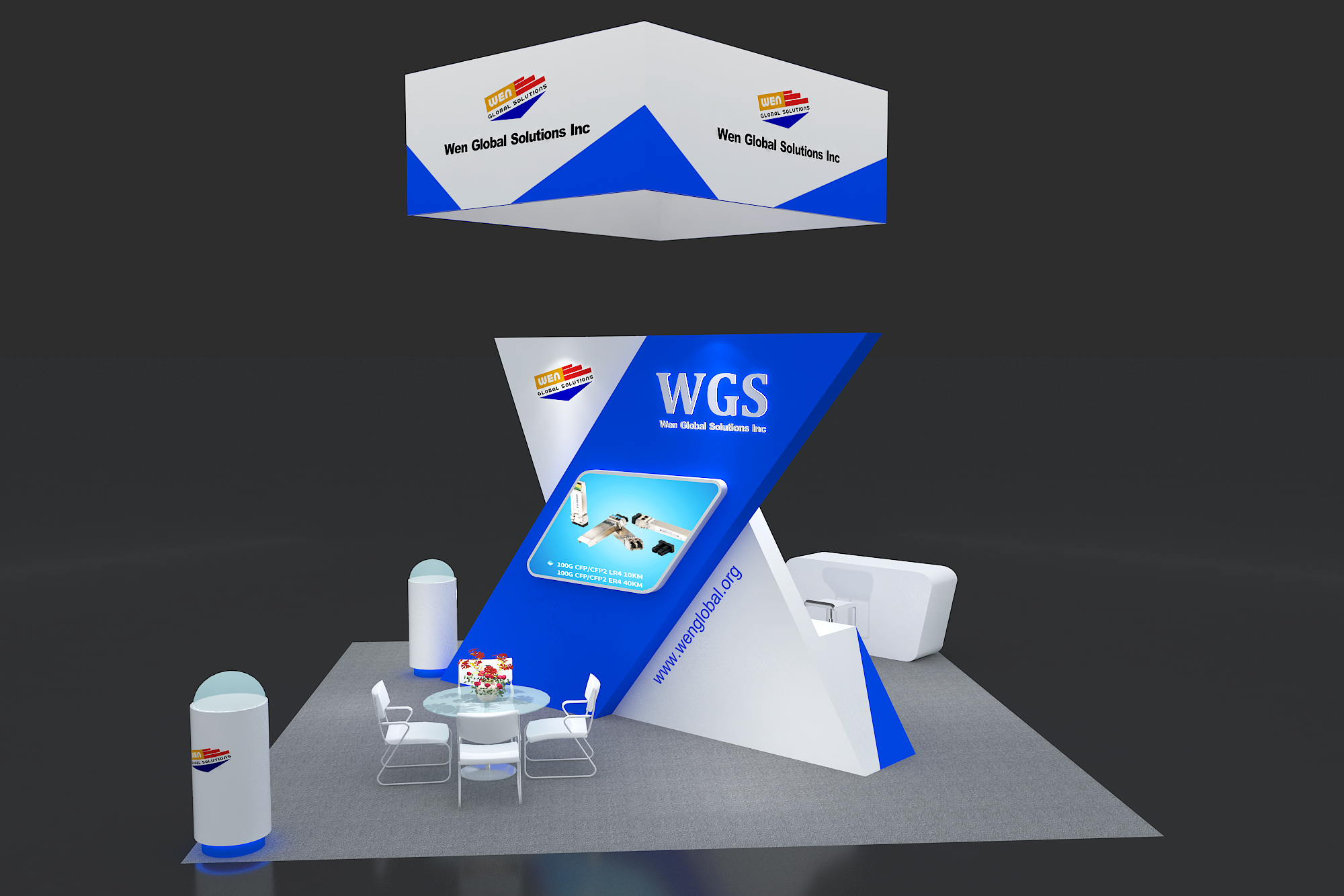 套餐编号: 36-W28 包括: 背景墙、1个吊顶、1台电视机、1个展示台、2个玻璃圆台、1个接待台,1张吧椅、2张洽谈桌、8张洽谈椅、地毯、1个垃圾篓、资料架、照明用电、展台安装及拆除等等。 ***不含画面设计 场地费: 24,000美元 (下载场地合同) 拐角位(开口)的展位需要另加: 300美元/每个