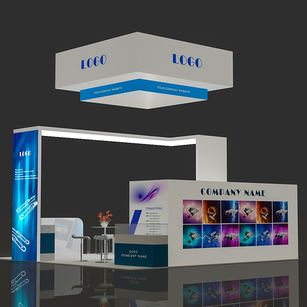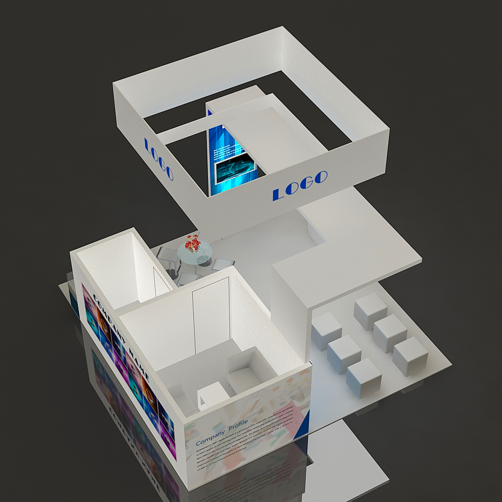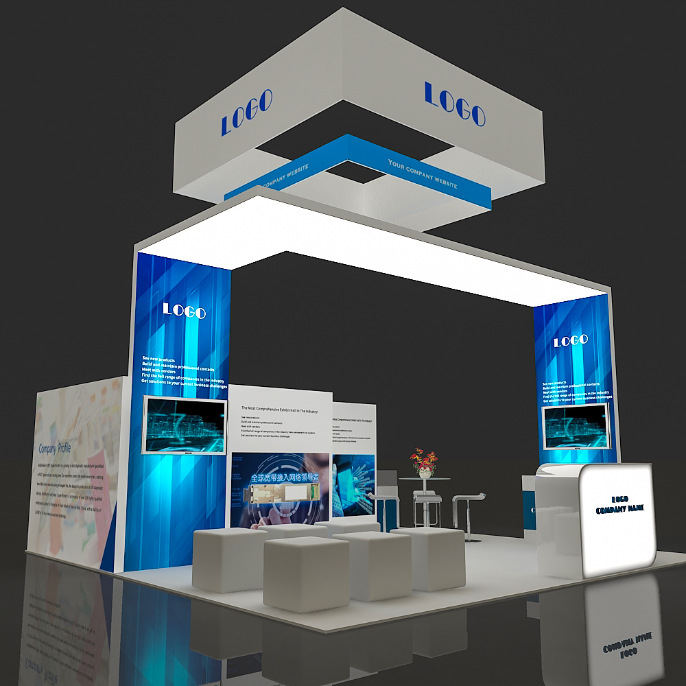 套餐编号: 36U 包括: 背景墙、吊顶、1个会议室、1个储藏室、两台电视机、两个展示柜、1张咨询台、5把吧椅、1张洽谈台、一套沙发座椅、6张方形座椅、地毯、垃圾桶、吊灯、照明用电。展台安装及拆除等等 ***不含画面设计 场地费: 24,000美元 (下载场地合同) 拐角位(开口)的展位需要另加: 300美元/每个