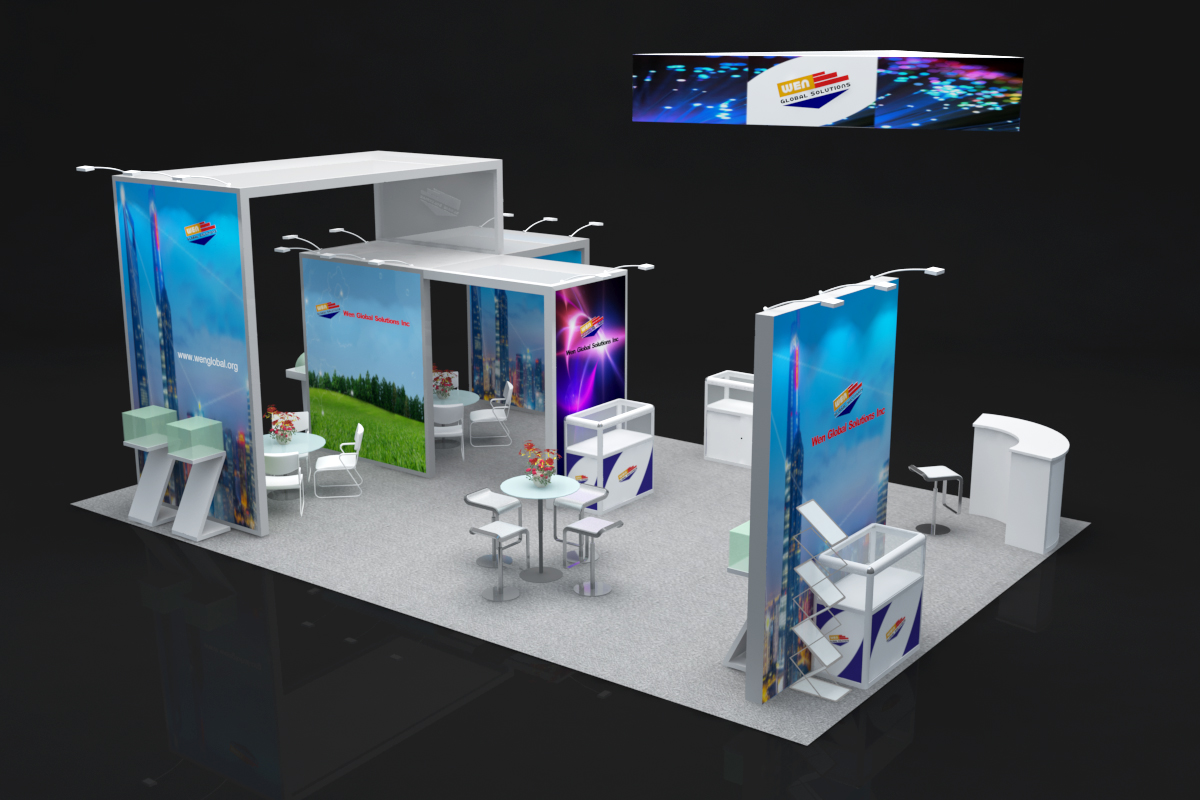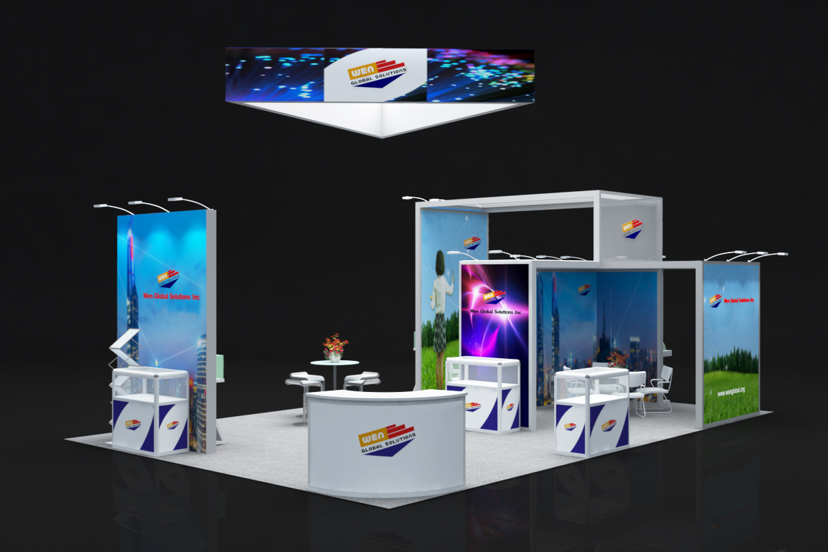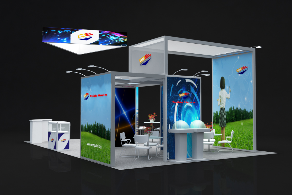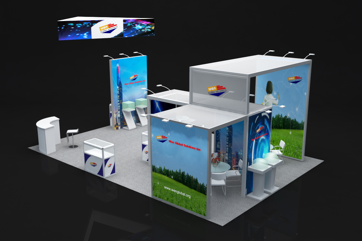 套餐编号: 54E 包括:背景墙、1个吊顶、1个半开放式会议室、1张接待台、5张吧椅、4个玻璃低柜、1个玻璃高柜、 6个展示柜-1、2个展示柜-2、2个展示台、3张洽谈桌、8张洽谈椅、1个资料架、1个垃圾篓、16盏射灯、地毯、照明用电、展台安装及拆除等等。 ***不含画面设计。 场地费: 36,000美元 (下载场地合同) 拐角位(开口)的展位需要另加: 300美元/每个